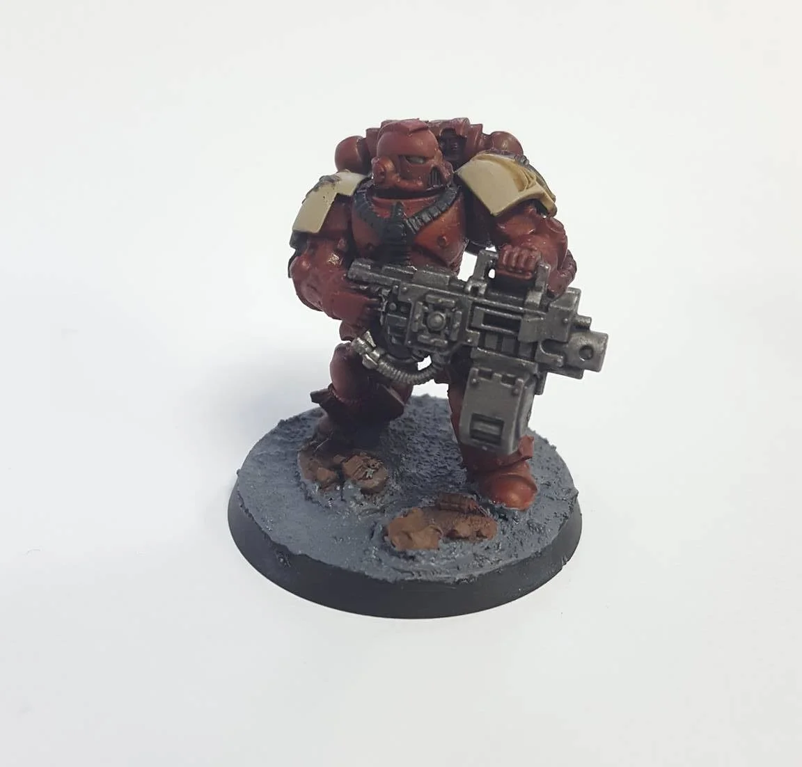 For this conversion I used the arms and legs from the Terminator kit, the body's from the Tactical Squad (using modelling putty to widen the interior), and cutting two backpacks to create one wider back pack.