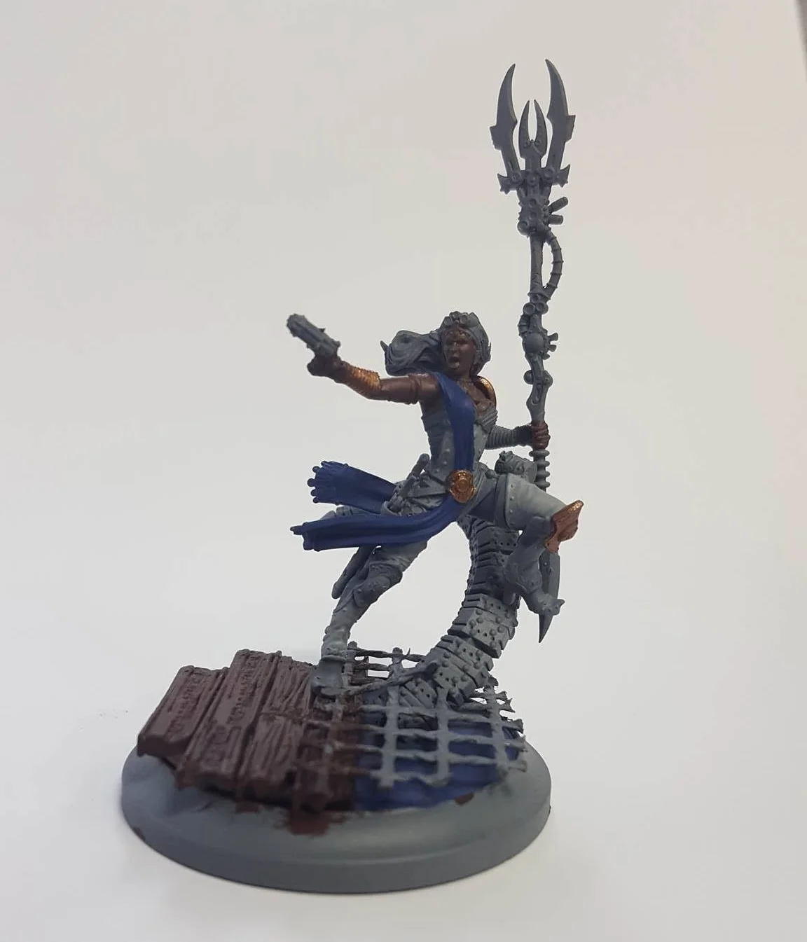 Although some conversations can take time to plan and create, I find that the best-looking work I have done is often the simple change of an arm, or swapping is a hand. With Legendary Nimue, I decided to change her so that she was slightly different to the others that have been appearing on Instagram (and the other social media places). This was a simple change, by cutting off her arm at the elbow and shoulder I was able to extend her arm and position the pistol to a firing pose. Nimue's weapons and appearance have changed, but she now looks different to her doppelgangers.