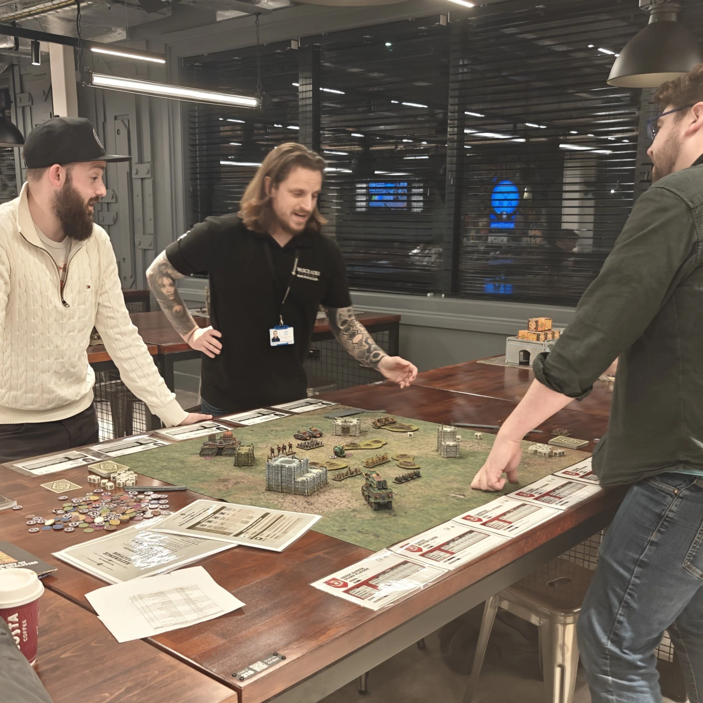 Our store space is one for the history books, featuring a gaming hall with over 60 spaces for intrepid gamers, alongside our kitchen and lounge area, which seats an additional 56 people, for a total of 116 gamers. Alongside tonnes of gaming space, we also stock a tremendous amount of products. Ranges of Warhammer are on full display, featuring sets of 40k, Age of Sigmar, Kill Team, The Old World, Horus Heresy and more. We also carry other game systems, so if you’re in the market for Marvel Crisis Protocol, Malifaux, Conquest, Corvus Belli, Bolt Action, Star Wars Legion AND Shatterpoint - and of course Armoured Clash and Dystopian Wars - make sure you drop by ASAP!